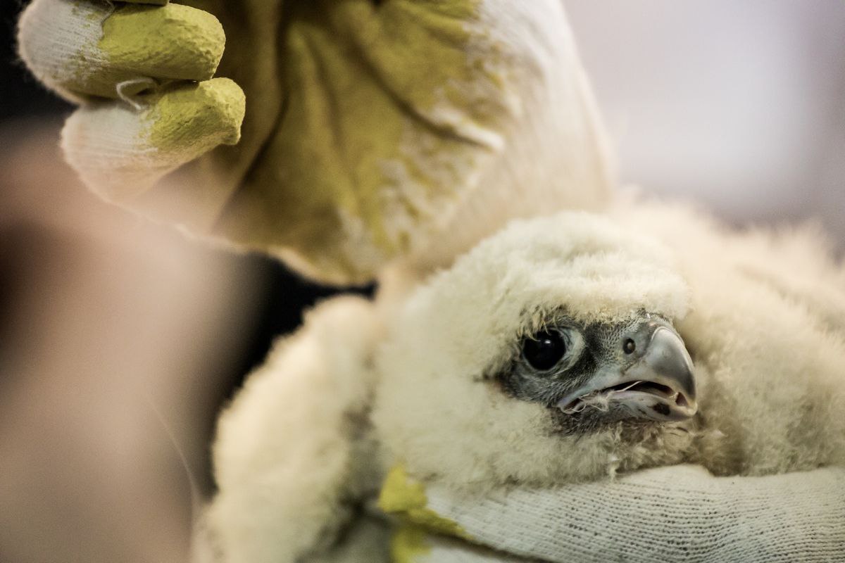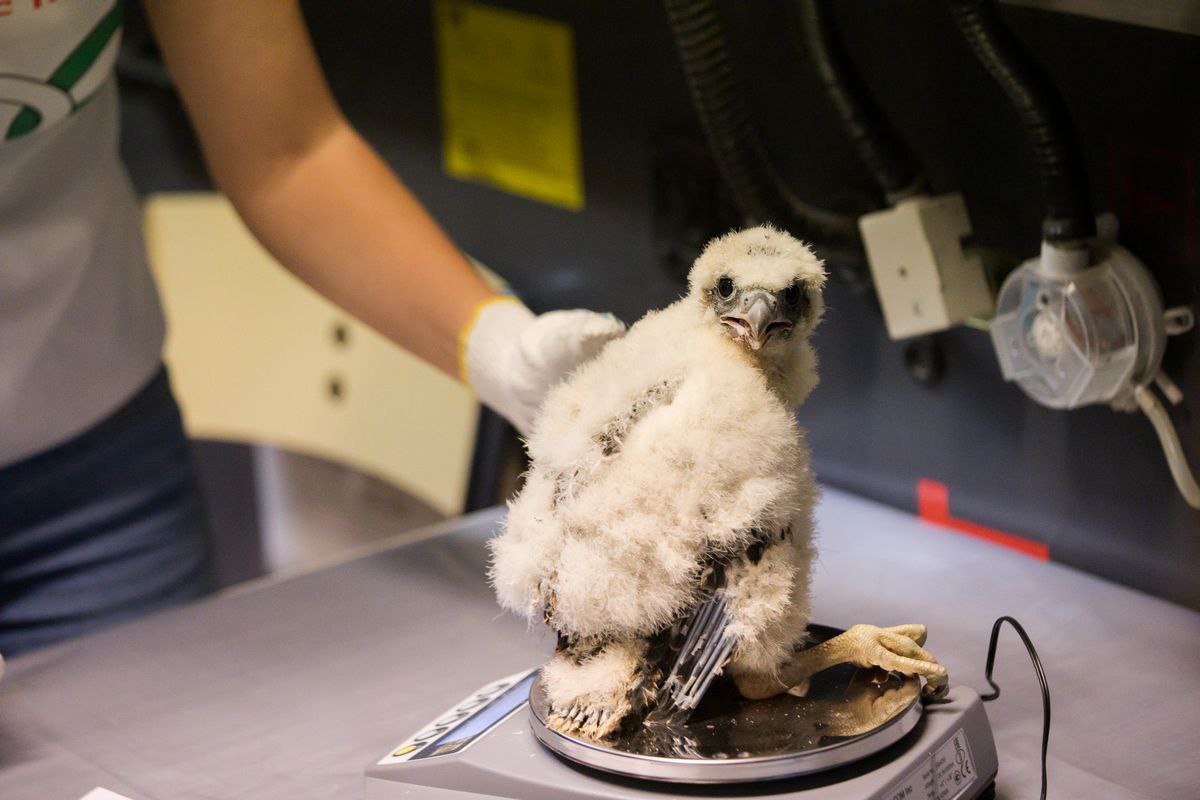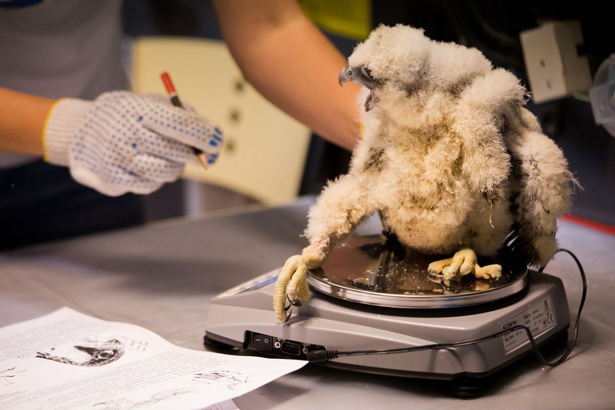 Утром в пятницу 10 июня в уфимском офисе Банка Уралсиб прошло запланированное кольцевание птенцов соколов-сапсанов. В процессе участвовали орнитологи проекта «Атлас птиц Уфы», ветеринарный врач, кураторы, а также приглашенные журналисты и фотографы.