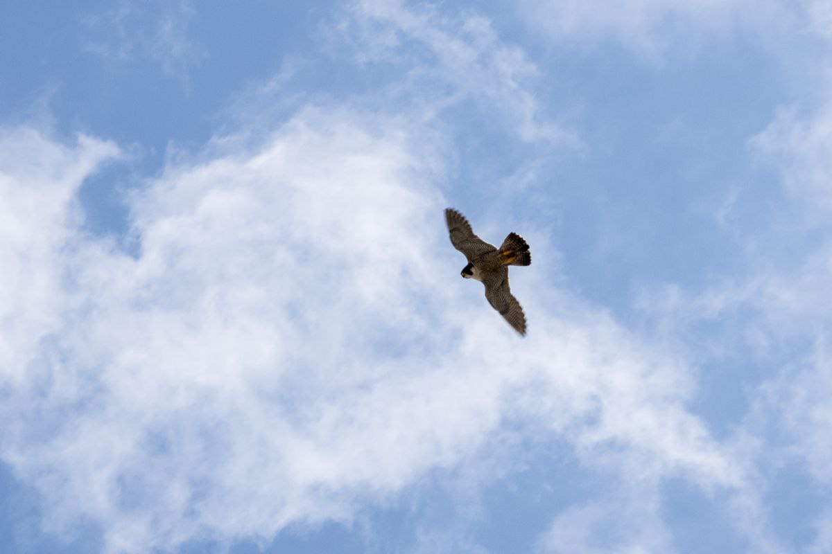 Встать на крыло, по расчетам орнитологов, птенцы должны после 20 июня. Уверенные полеты начнутся чуть позже. После этого родители вместе с молодняком начинают активно охотиться в пределах города, а осенью (предположительно в октябре) покидают регион на период зимовки. Молодые сапсаны в течение первых 2-3 лет жизни не образуют пар. Поэтому они могут быть замечены в разных городах России и в других странах.