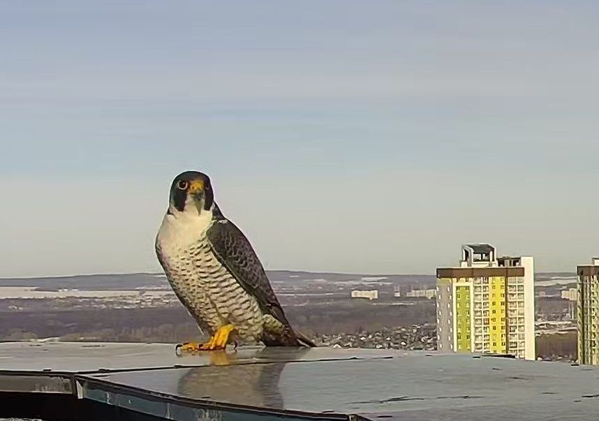 Утром 15 марта камера на крыше главного офиса Банка Уралсиб в Уфе зафиксировала радостное событие: сапсаны вернулись в родные края и готовятся к периоду гнездования, а значит в город пришла весна.